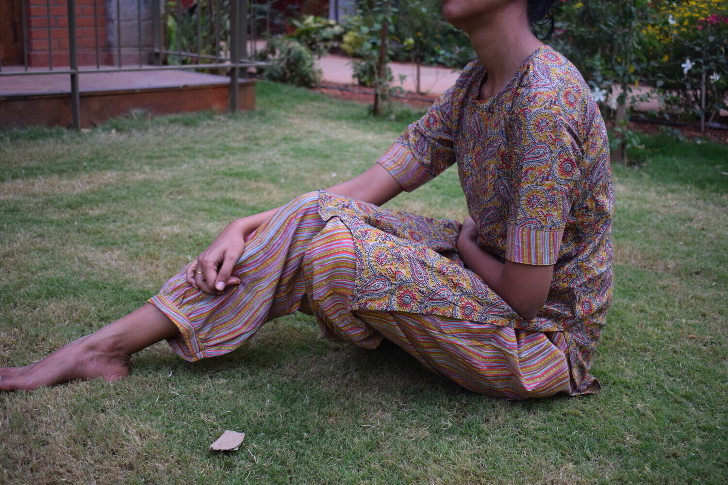 Add a touch of traditional elegance to your wardrobe with Tara's beautiful Kalamkari set! Featuring intricate hand-painted Kalamkari designs, this set is a true masterpiece.